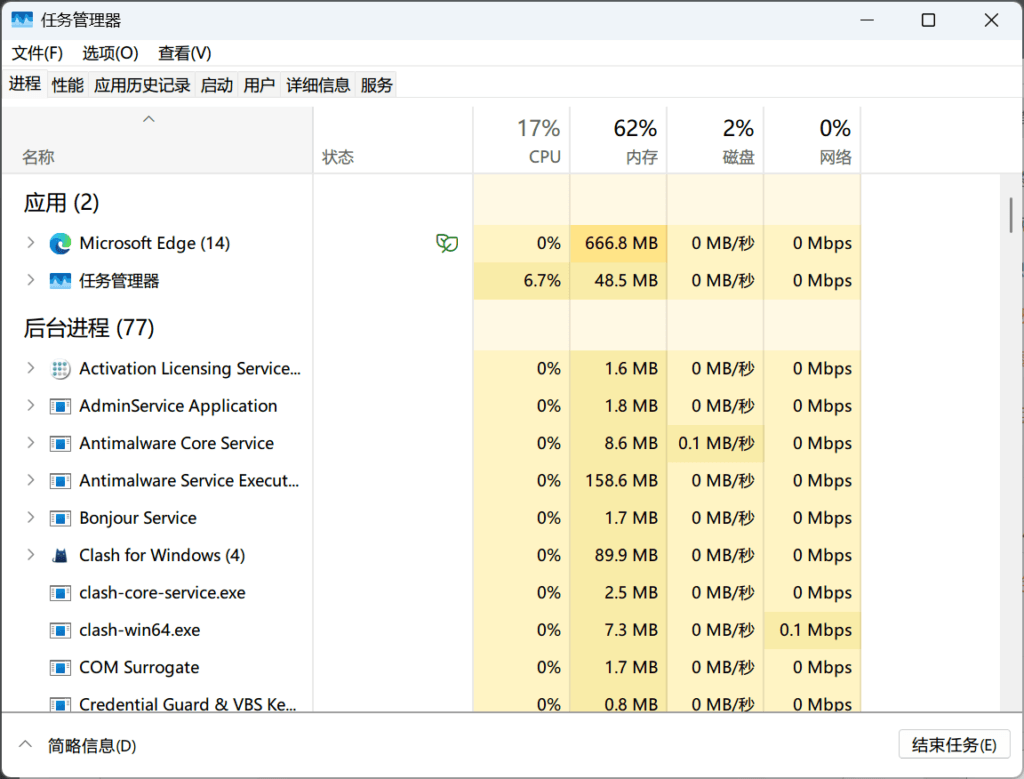这个版本的任务管理器一直用到 Windows 11 21H2。从 22H2 开始,微软就给任务管理器上线了新的现代界面,虽然好看是好看了不少,但是架不住微软狗屎一样的优化,加上并没有彻底迁移至 WinUI 3 等等缘故,导致这个任务管理器加载十分的慢……