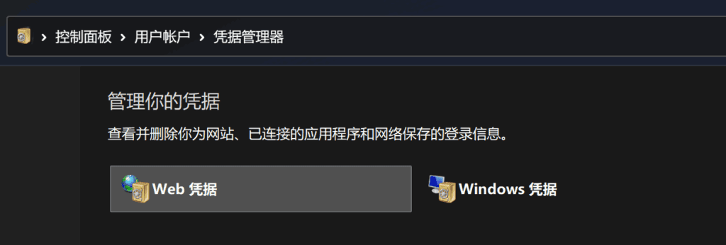 其实很多人不知道,Windows 是有内置的凭据管理器的。打开控制面板,选择用户账户就能看到了。而且 Windows 11 下没有被删。