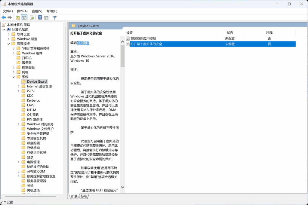 然后转到计算机配置 > 管理模板 > 系统 > Device Guard。