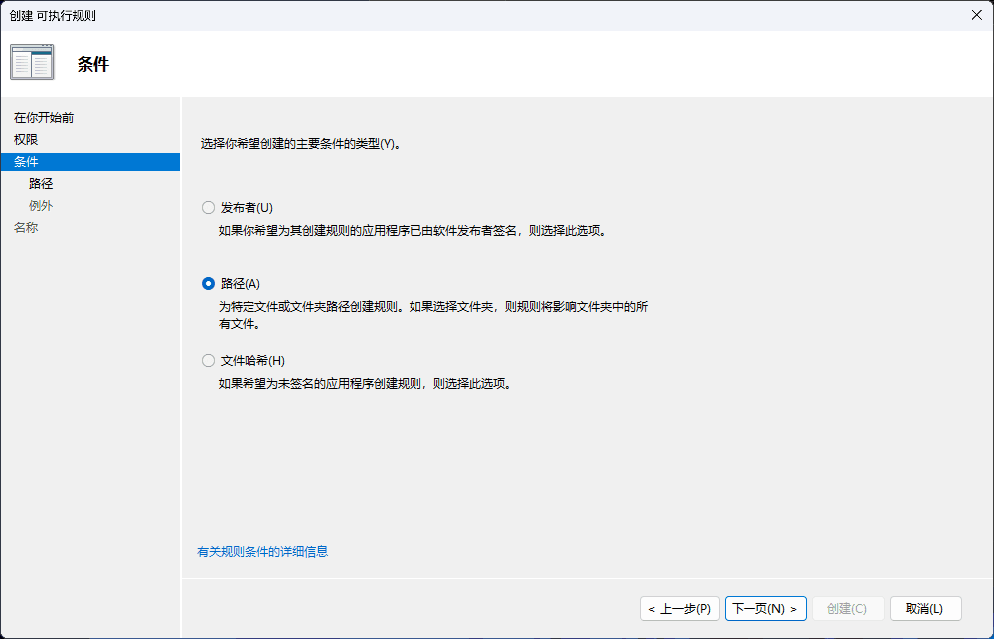 选择主要条件类型。