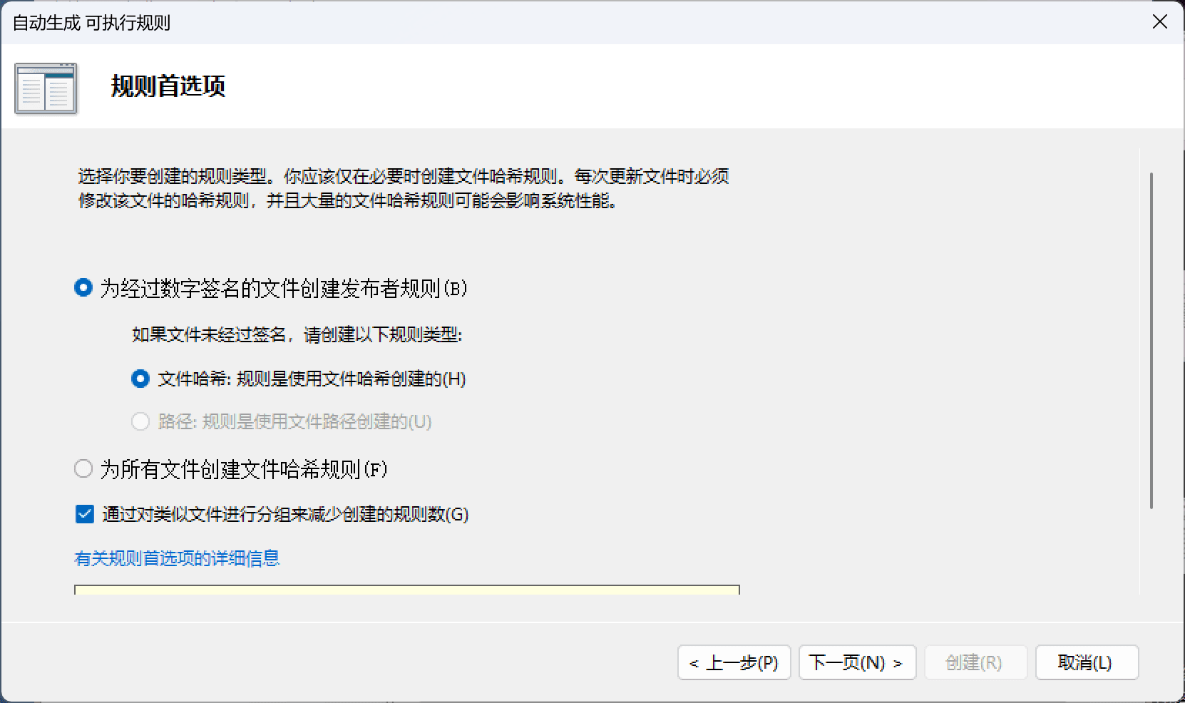 “查看将自动创建的规则”和刚刚这个东西功能差不多,只不过这个界面查看的是创建的规则,而且不允许你直接取消勾选。