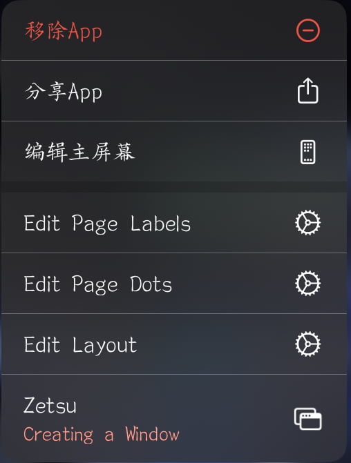 要编辑布局的时候长按桌面图标,就可以看到Atria的几个选项: