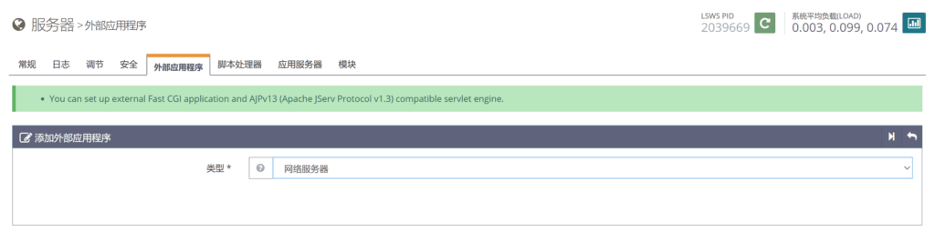 添加 OpenLiteSpeed 外部应用程序
