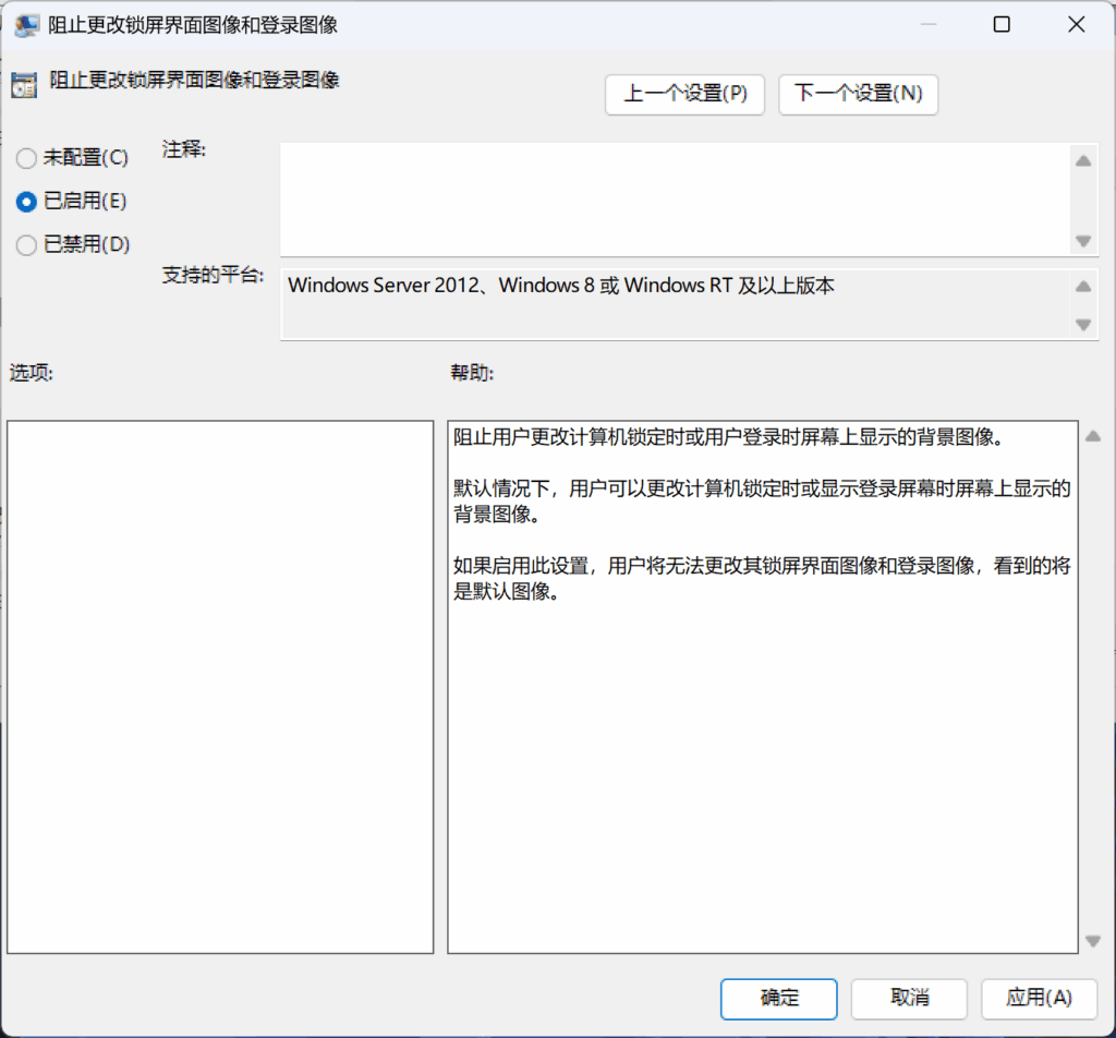 这里需要修改的地方不多,只有一个“阻止更改锁屏界面图像和登录图像”。