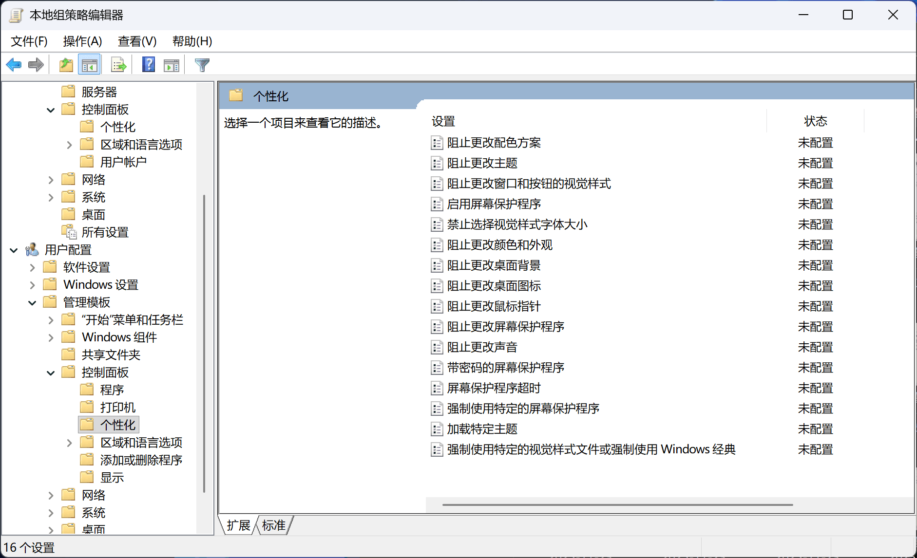 好在 Windows 提供了一套完整的组策略来帮助我们制止同学修改设备的个性化设置。