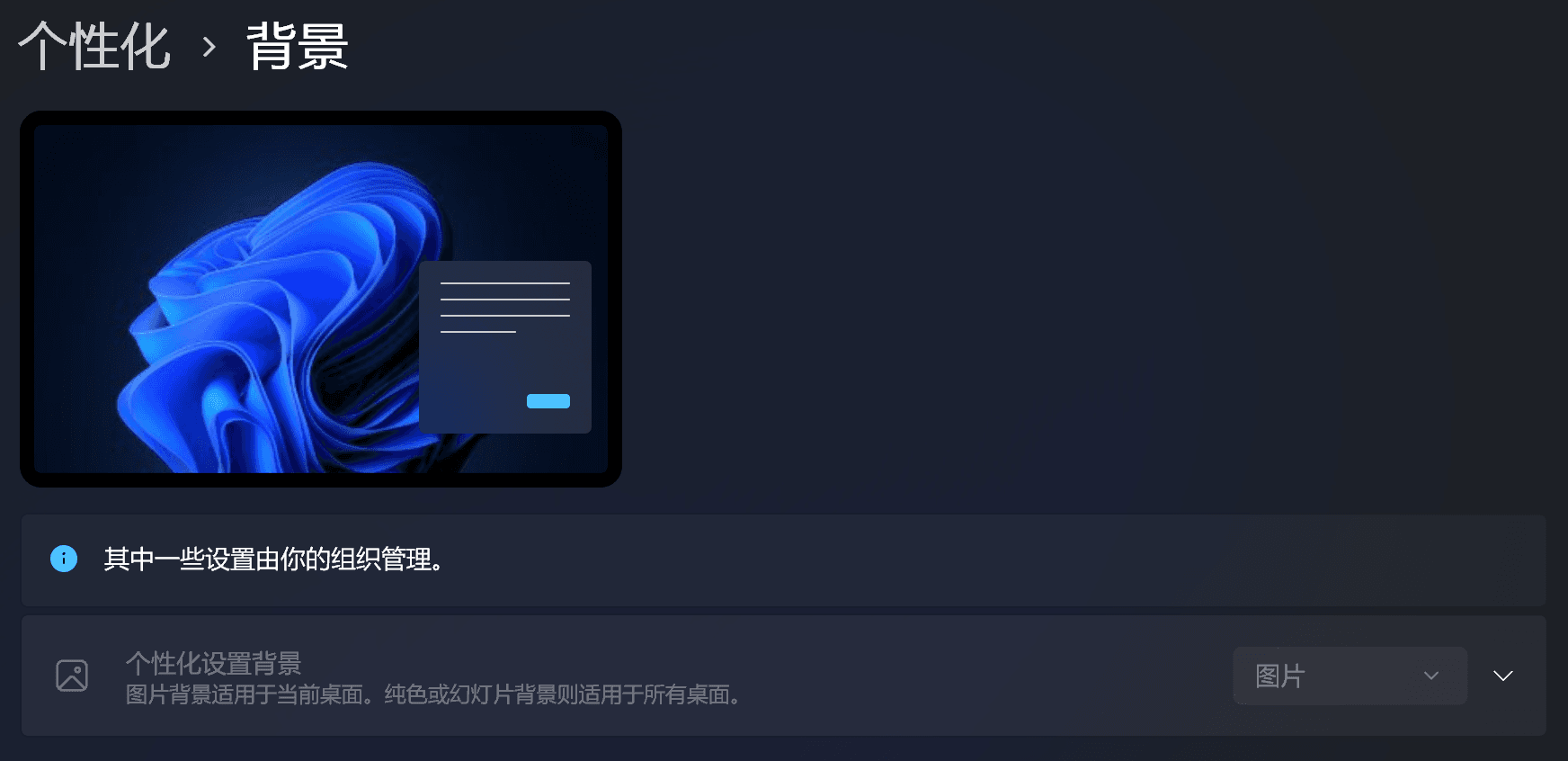 设置完之后,再次打开对应的设置页面,就会看到大大的“其中一些设置由你的组织管理”。承认吧,看着确实牛逼……