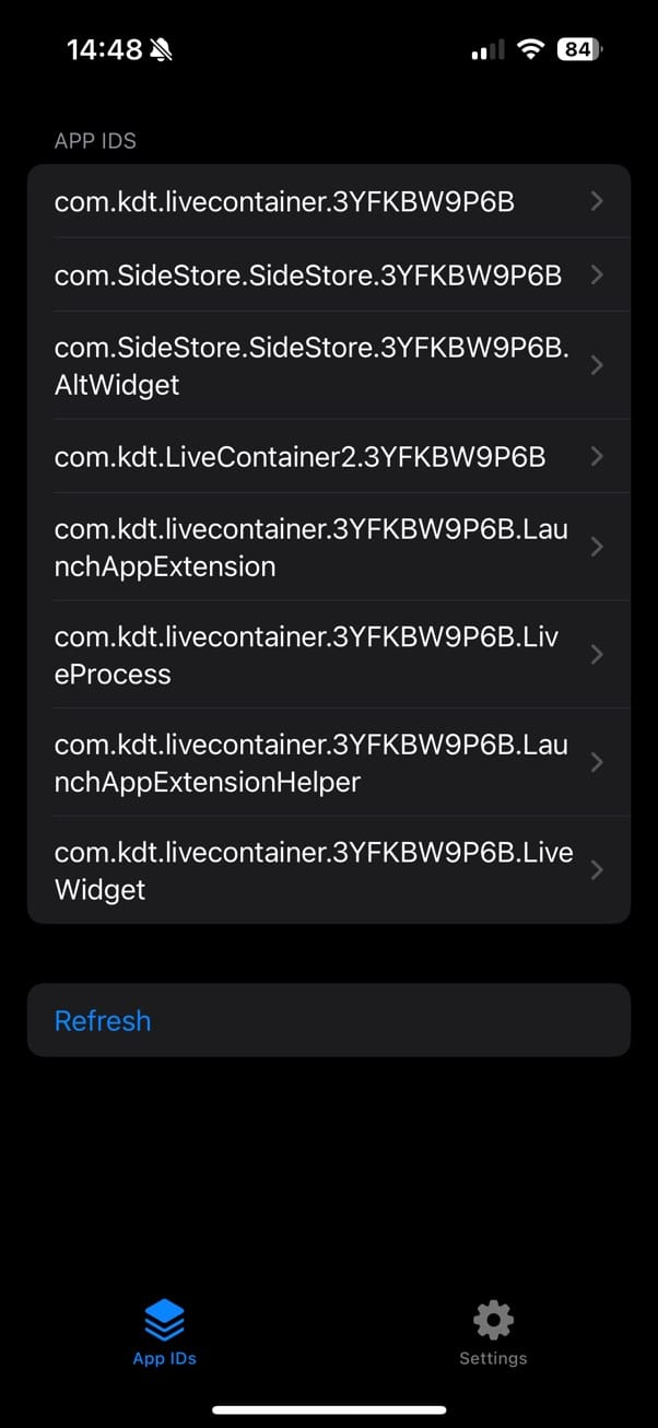 点击 com.kdt.livecontainer.XXXXXXXXXX,注意最后的这段东西是你的 Team ID,每个人不一样,而且要选择 Team ID 后没有其他内容的。比如在上面这张截图里面就是第一个。